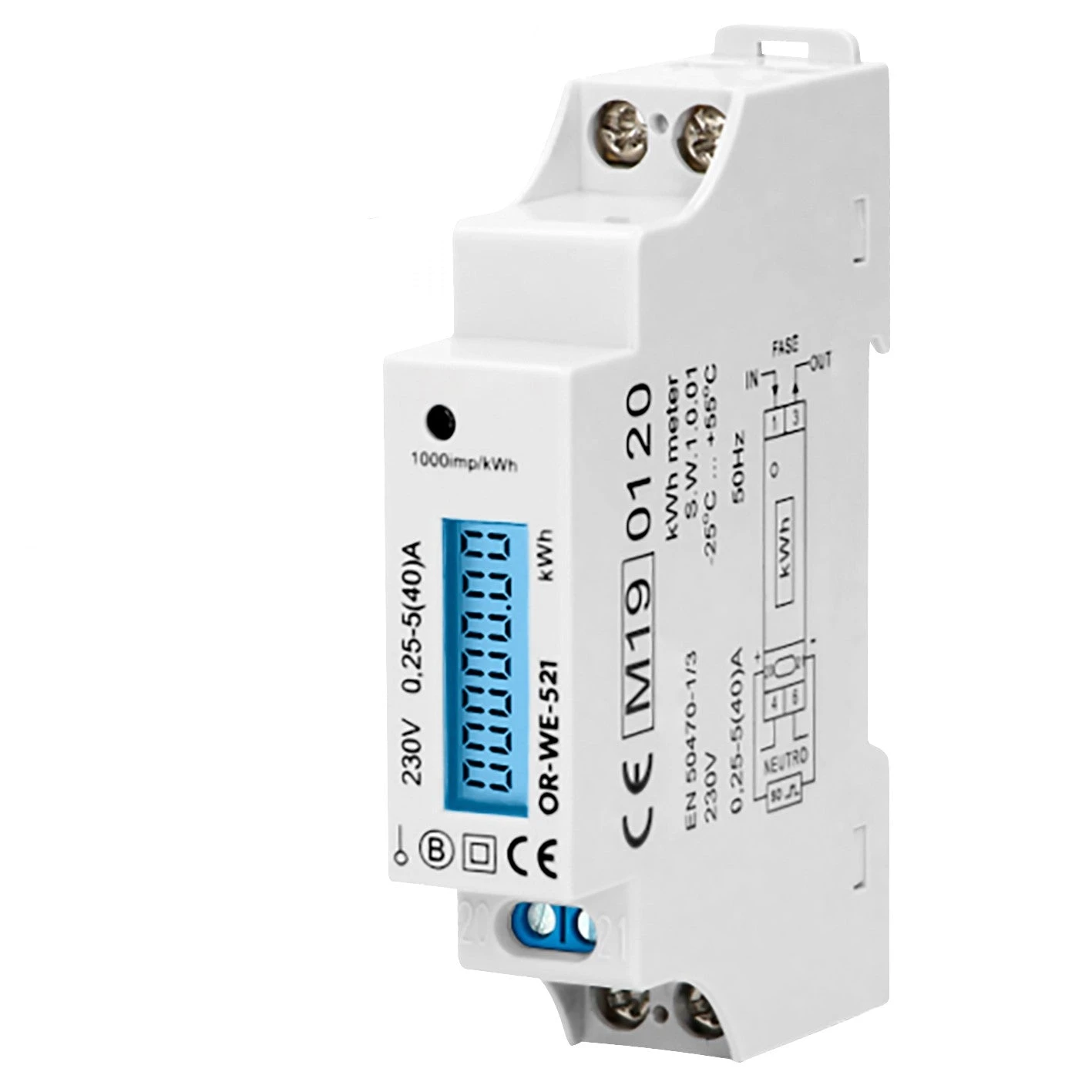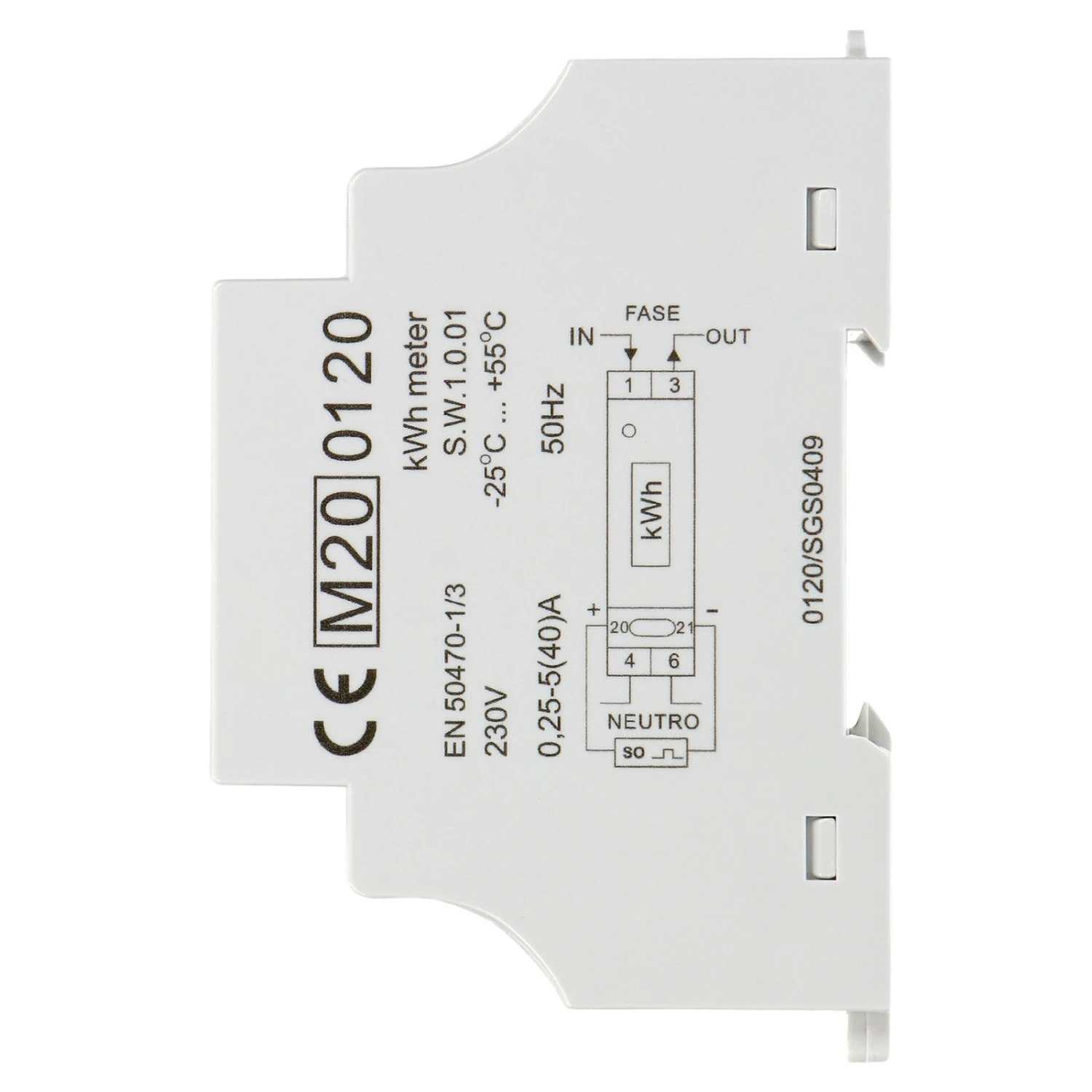 1-Phasen-Stromzähler, 40A, MID, Impulsausgang, Hintergrundbeleuchtung, 1 Modul, DIN TH-35mm