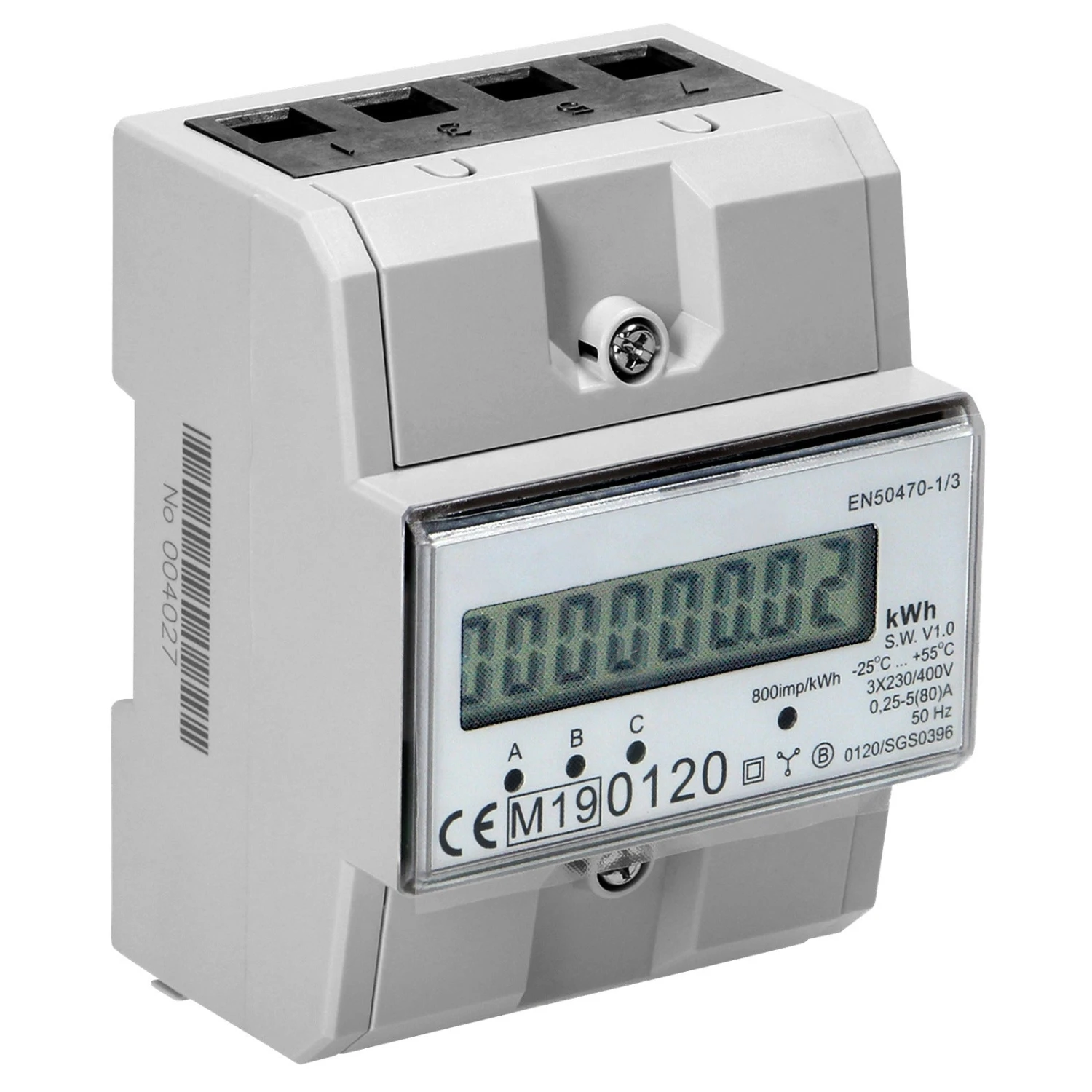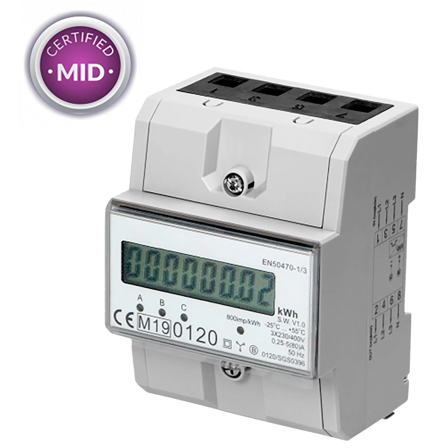3-Phasen-Stromzähler, 80A, MID, 3 Module, DIN TH-35mm