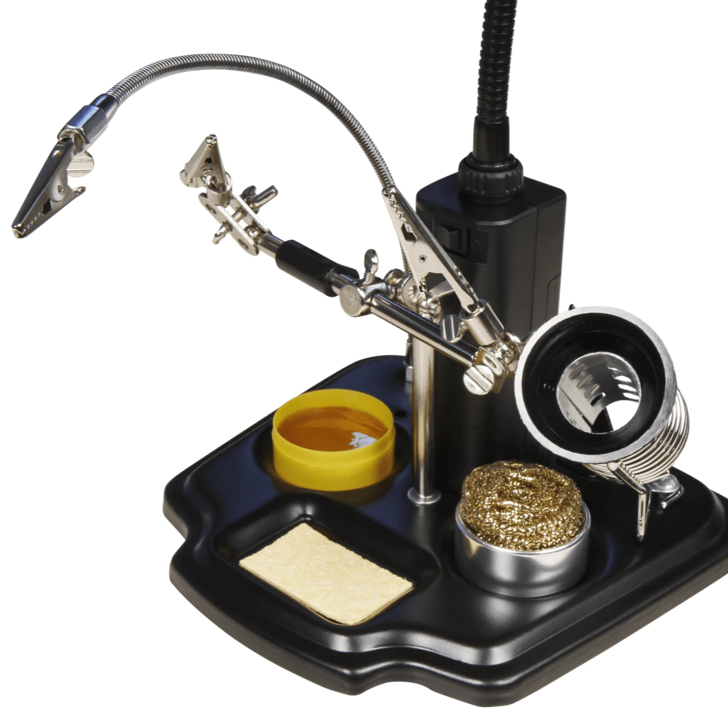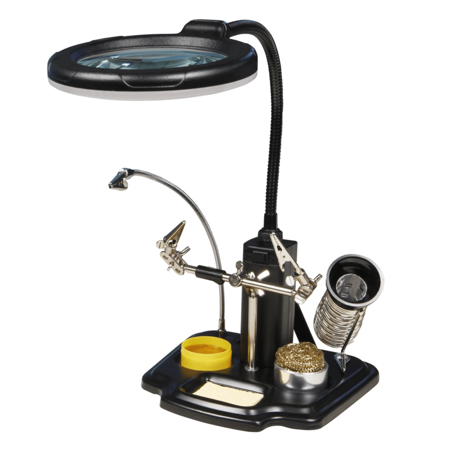 - Unentbehrlich für alle filigranen Arbeiten, bei denen Sie beide Hände zum Arbeiten brauchen wie z. B. Löt- und Feinarbeiten.