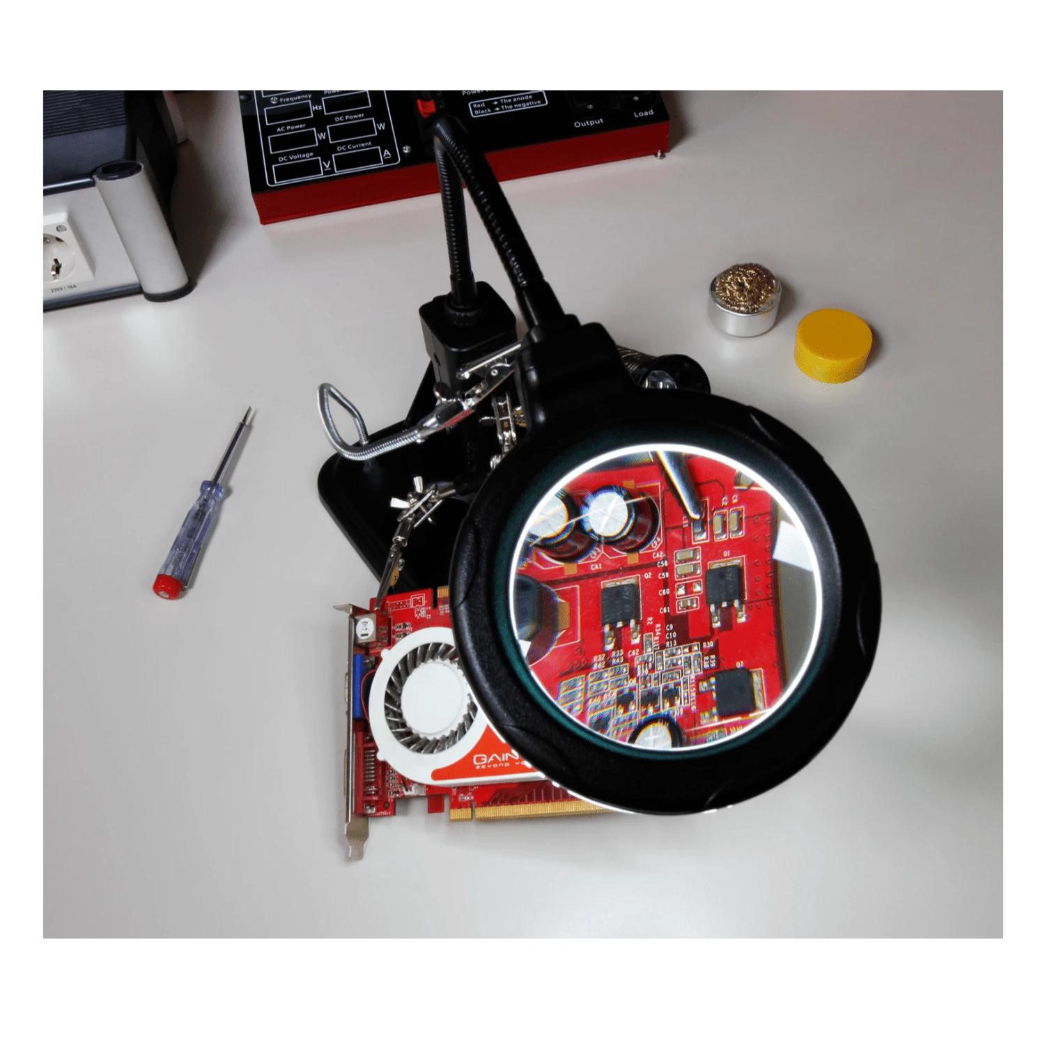 - Mit der beleuchteten Lupe geht die Arbeit präziser von der Hand.