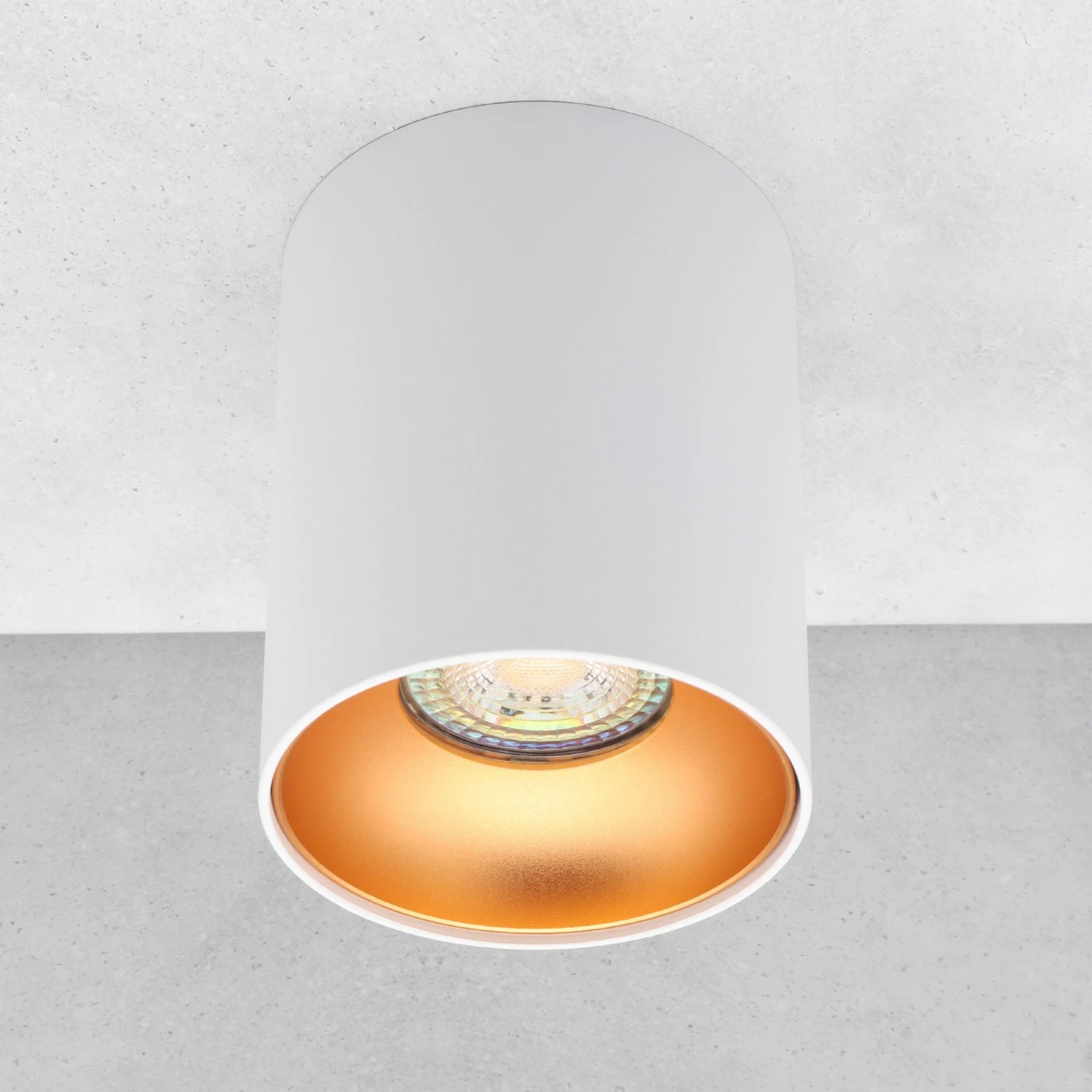 Die ASTRAL Aufbauleuchte verbindet luxuriöses Design in Weiß und Gold mit praktischer Funktionalität. Mit ihrem Durchmesser von 85 mm und einer Höhe von 110 mm ist sie ideal für gezielte Beleuchtung oder als stilvolles Dekorationselement in jedem Innenraum. Die Leuchte bietet nicht nur warmweißes Licht für eine gemütliche Atmosphäre, sondern überzeugt auch durch ihre hochwertige Verarbeitung aus Aluminium, was ihre Langlebigkeit sichert.