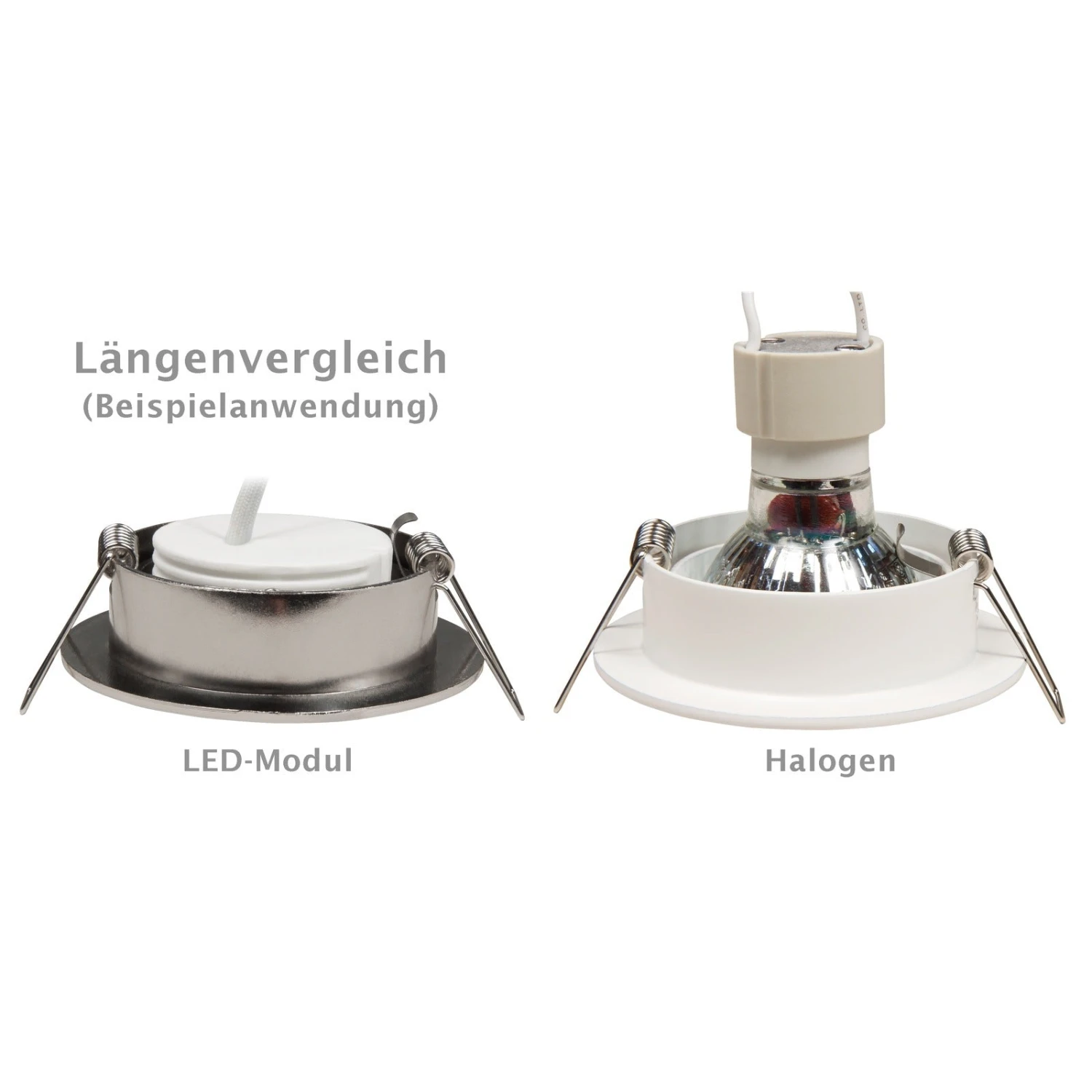 - Geringe Einbautiefe für vielfältige Anwendungsmöglichkeiten Mit nur 25mm Einbautiefe ist dieses LED-Modul ein wahres Raumwunder. Im Gegensatz zu herkömmlichen GU10 Leuchtmitteln, die 70mm Einbautiefe benötigen, passt unser Modul mühelos in jede Einbausituation.